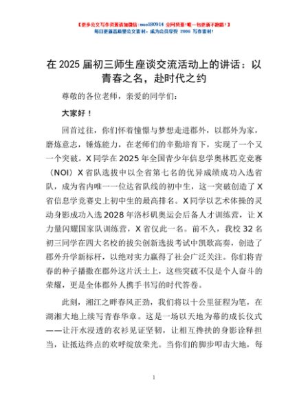 / 在2025届初三师生座谈交流活动上的讲话:以青春之名,赴时代之约