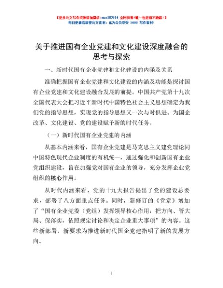 / 关于推进国有企业党建和文化建设深度融合的思考与探索