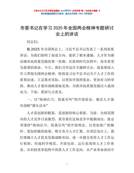 / 市委书记在学习2025年全国两会精神专题研讨会上的讲话