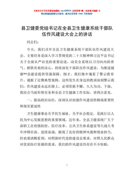 / 县卫健委党组书记在全县卫生健康系统干部队伍作风建设大会上的讲话
