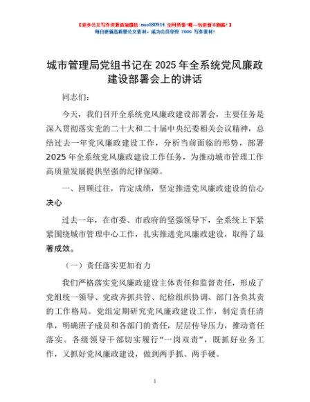 / 城市管理局党组书记在2025年全系统党风廉政建设部署会上的讲话