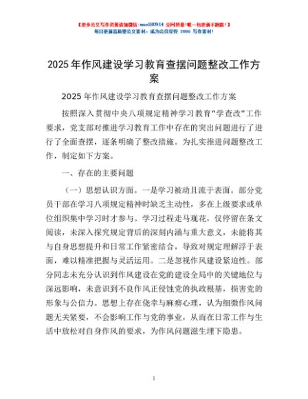 / 2025年作风建设学习教育查摆问题整改工作方案