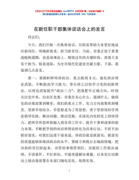 / 在新任职干部集体谈话会上的发言