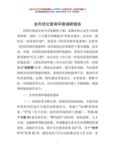 / 全市优化营商环境调研报告