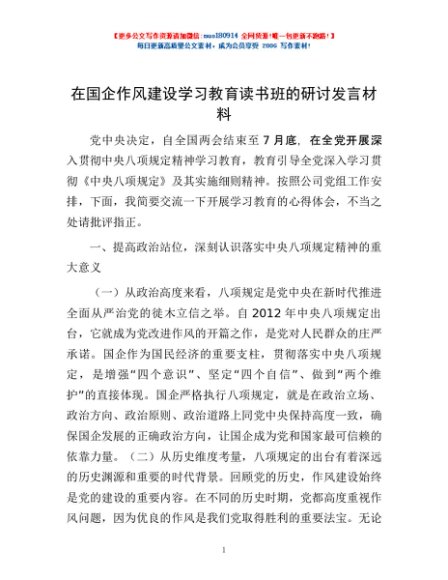 / 在国企作风建设学习教育读书班的研讨发言材料