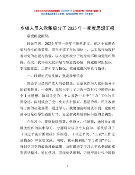 / 乡镇人员入党积极分子2025年一季度思想汇报