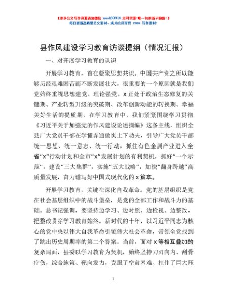 / 县作风建设学习教育访谈提纲(情况汇报)