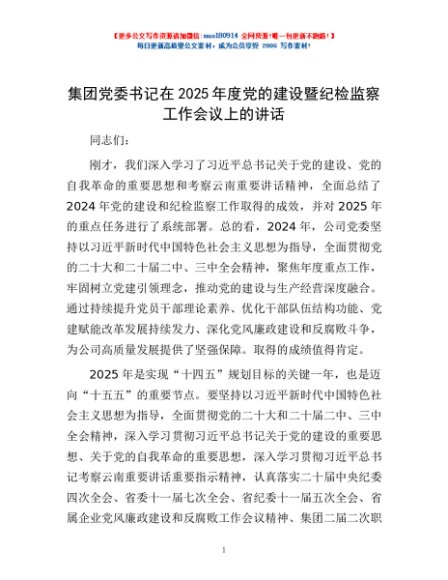 / 集团党委书记在2025年度党的建设暨纪检监察工作会议上的讲话