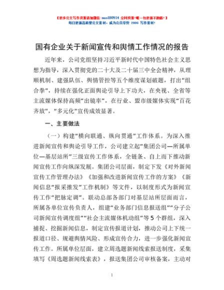 / 国有企业关于新闻宣传和舆情工作情况的报告
