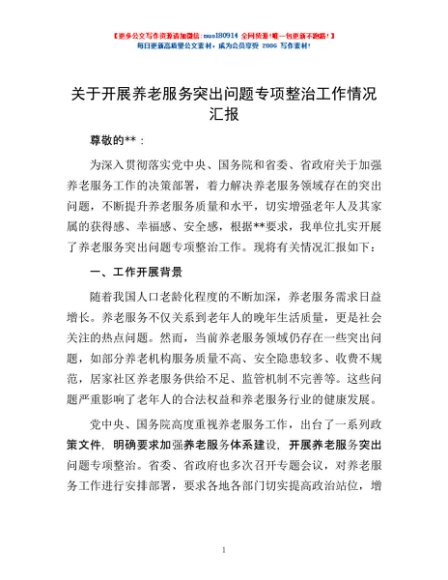 / 关于开展养老服务突出问题专项整治工作情况汇报