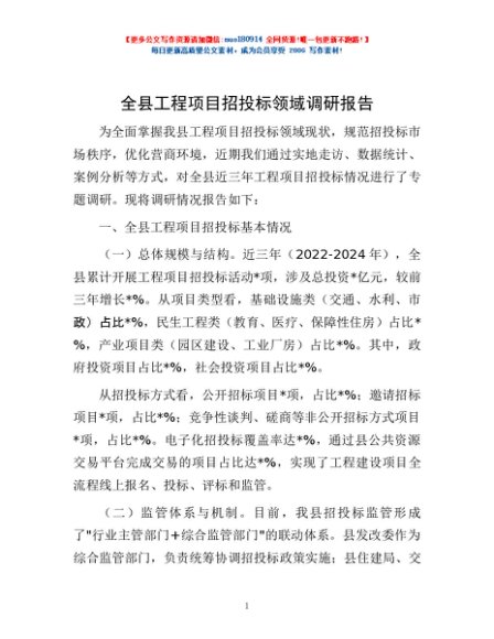 / 全县工程项目招投标领域调研报告