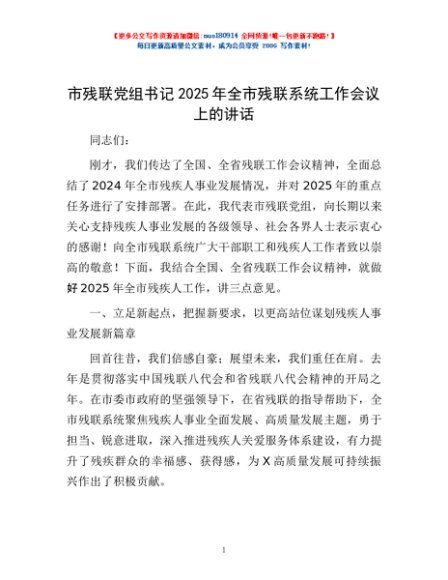 / 市残联党组书记2025年全市残联系统工作会议上的讲话
