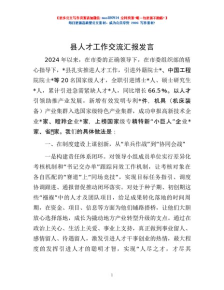 / 县人才工作交流汇报发言