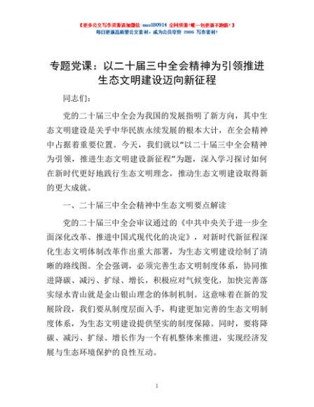 / 专题党课:以二十届三中全会精神为引领 推进生态文明建设迈向新征程