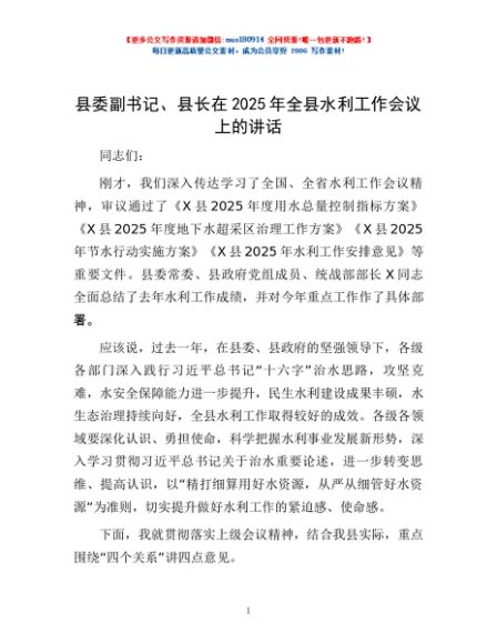 / 县委副书记、县长在2025年全县水利工作会议上的讲话