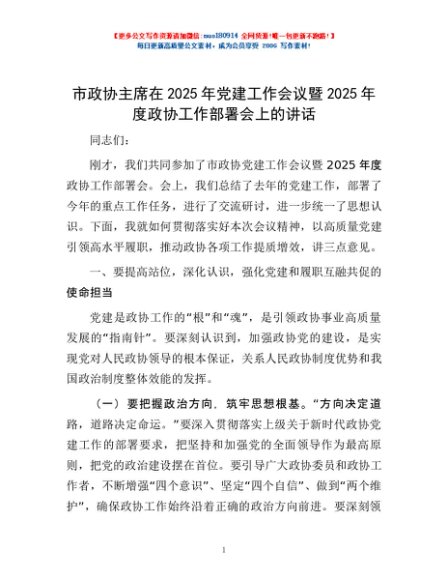 / 市政协主席在2025年党建工作会议暨2025年度政协工作部署会上的讲话
