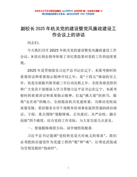 / 副校长2025年机关党的建设暨党风廉政建设工作会议上的讲话