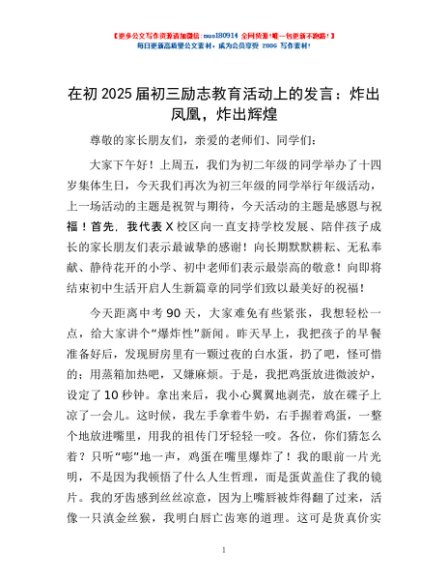 / 在初2025届初三励志教育活动上的发言:炸出凤凰,炸出辉煌