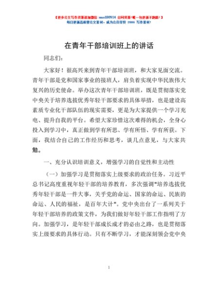 / 在青年干部培训班上的讲话