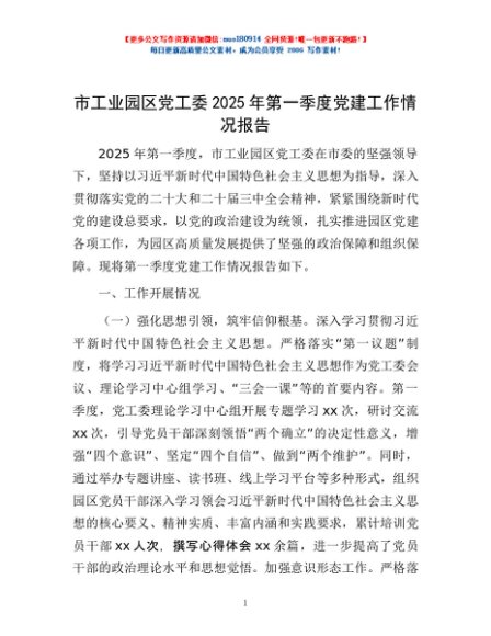 / 市工业园区党工委2025年第一季度党建工作情况报告