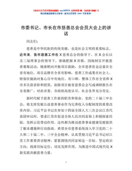 / 市委书记、市长在市慈善总会会员大会上的讲话