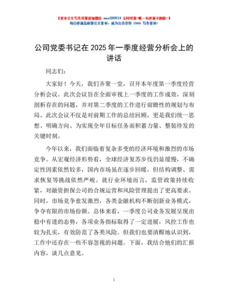 / 公司党委书记在2025年一季度经营分析会上的讲话