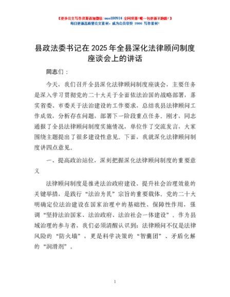 / 县政法委书记在2025年全县深化法律顾问制度座谈会上的讲话