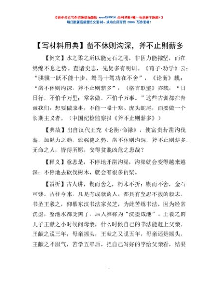 【写材料用典】凿不休则沟深,斧不止则薪多