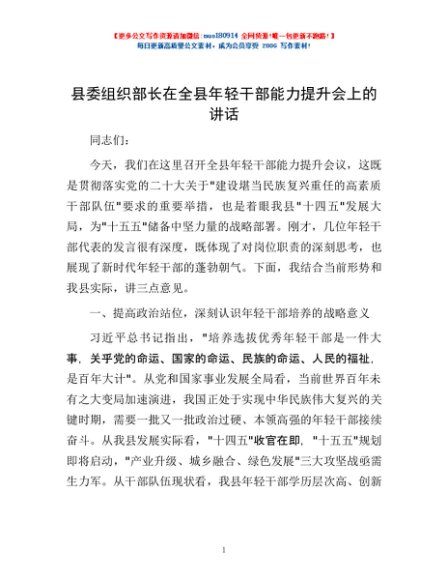 / 县委组织部长在全县年轻干部能力提升会上的讲话