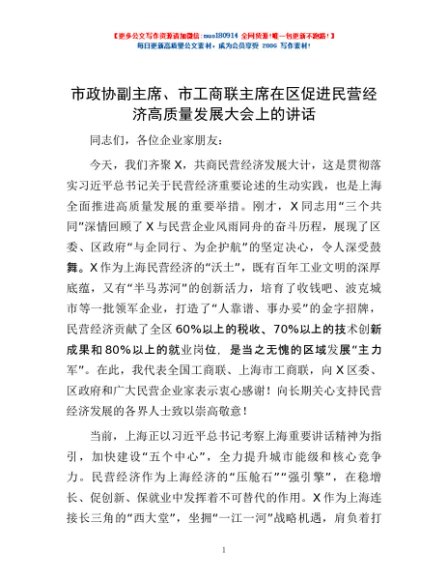 / 市政协副主席、市工商联主席在区促进民营经济高质量发展大会上的讲话