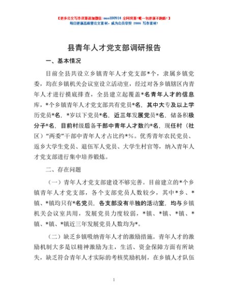 / 县青年人才党支部调研报告