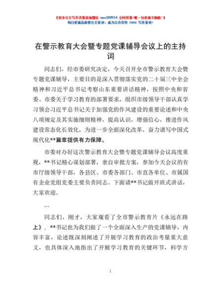 / 在警示教育大会暨专题党课辅导会议上的主持词