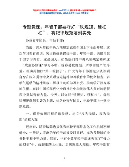 / 专题党课:年轻干部要守好“铁规矩、硬杠杠”,将纪律规矩落到实处
