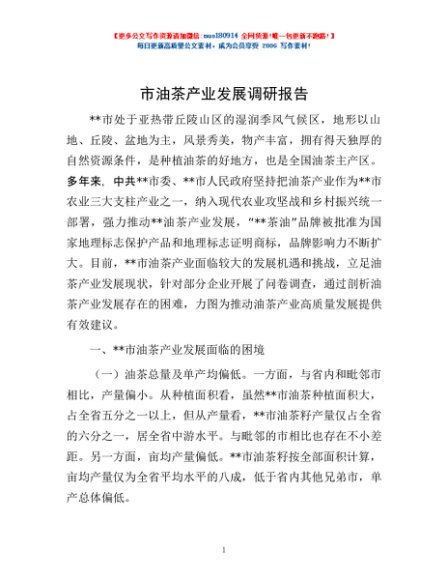 / 市油茶产业发展调研报告