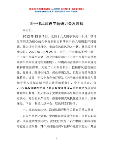 / 关于作风建设专题研讨会发言稿