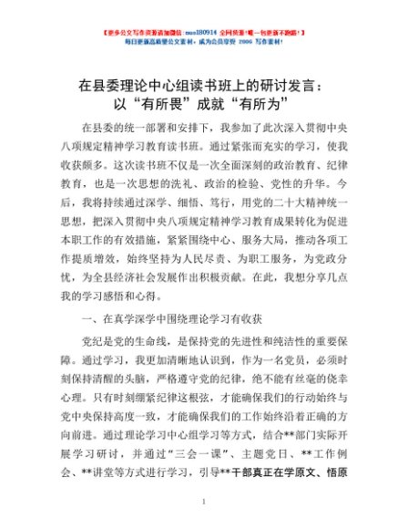 / 在县委理论中心组读书班上的研讨发言:以“有所畏”成就“有所为”