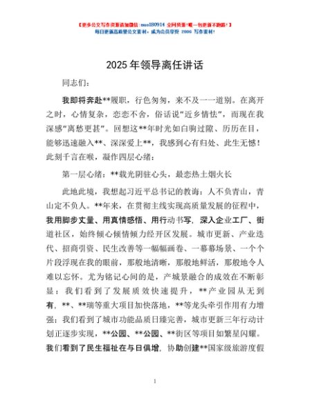 / 2025年领导离任讲话