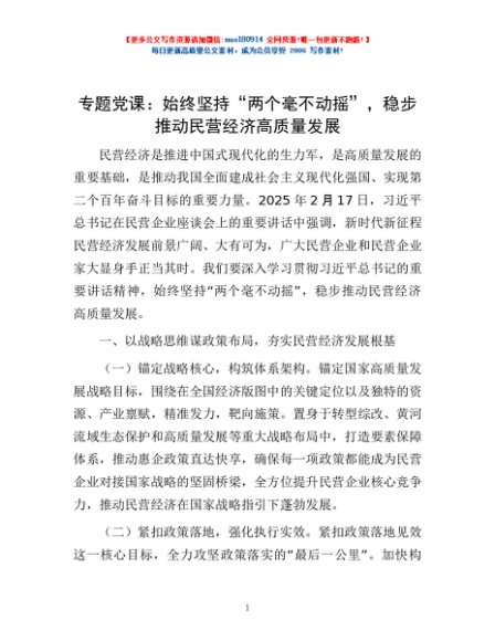/ 专题党课:始终坚持“两个毫不动摇”,稳步推动民营经济高质量发展