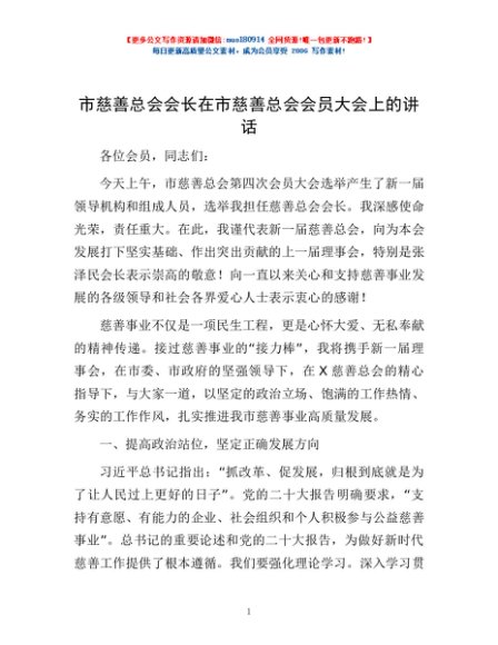 / 市慈善总会会长在市慈善总会会员大会上的讲话