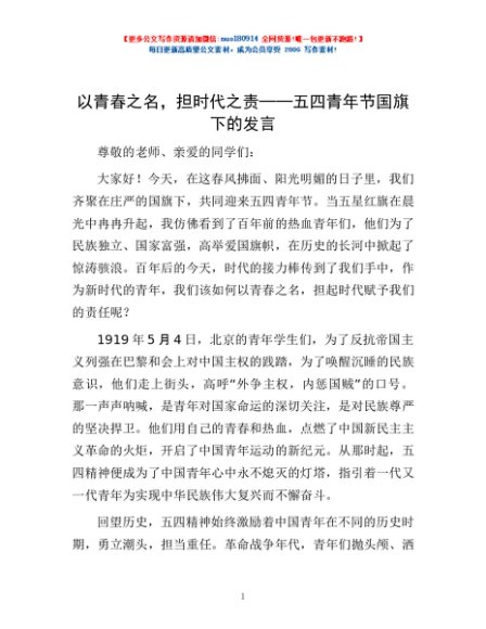 以青春之名,担时代之责——五四青年节国旗下的发言