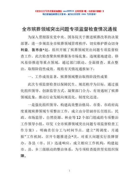 全市殡葬领域突出问题专项监督检查情况通报