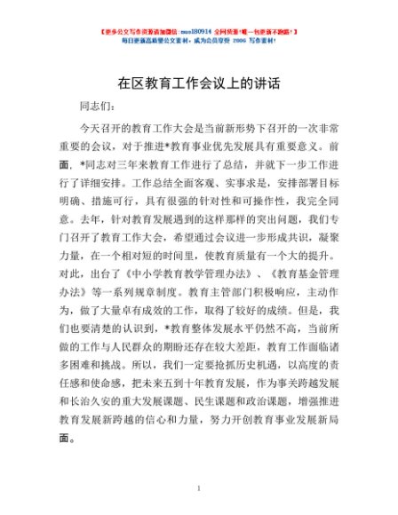 / 在区教育工作会议上的讲话