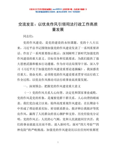 / 交流发言:以优良作风引领司法行政工作高质量发展