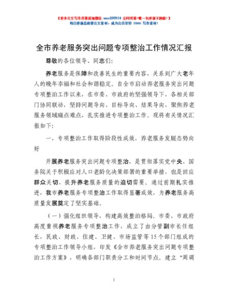 / 全市养老服务突出问题专项整治工作情况汇报