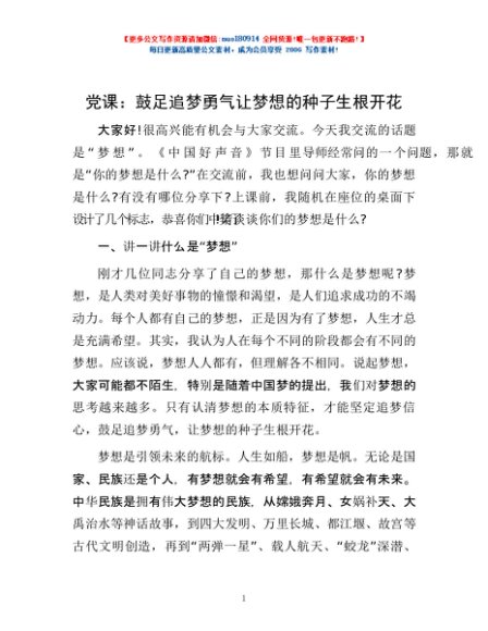 / 党课:鼓足追梦勇气 让梦想的种子生根开花