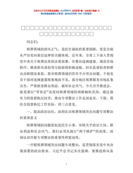 / 市纪委书记、监委主任在全市殡葬领域突出问题专项整治推进会上的讲话