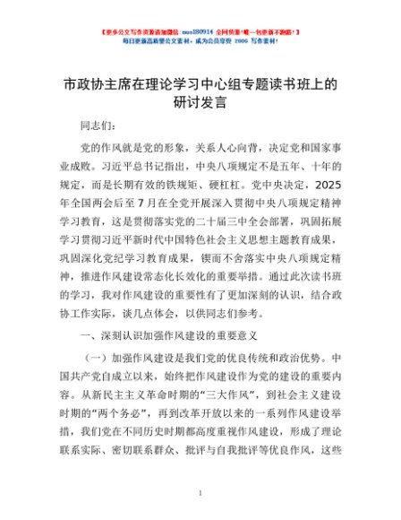 / 市政协主席在理论学习中心组专题读书班上的研讨发言