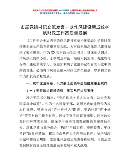市局党组书记交流发言:以作风建设新成效护航财政工作高质量发展