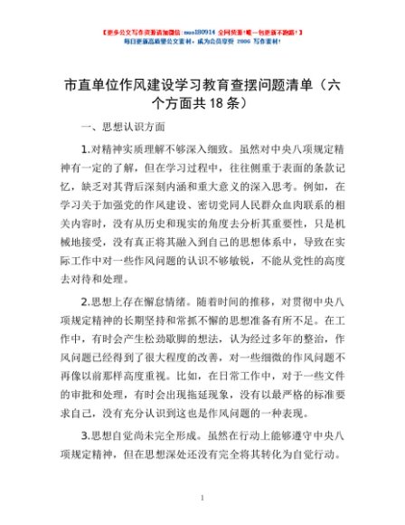市直单位作风建设学习教育查摆问题清单(六个方面共18条)