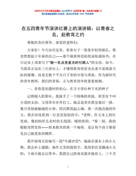 / 在五四青年节演讲比赛上的演讲稿:以青春之名,赴教育之约